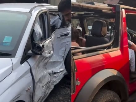 “There was a woman driving the Thar, the vehicle was speeding and it crashed into the white hatchback. I helped the victims from the vehicle. There was an elderly man who was severely injured, especially on the head and skull. The other occupant was injured too, but the baby was fine, Myron Fernandes, a local resident and eyewitness, said.