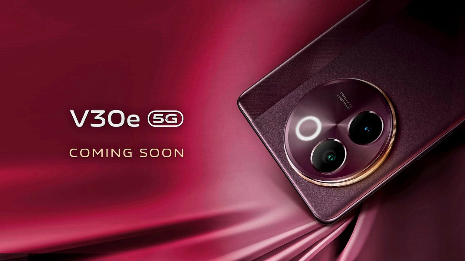 This phone has a unique textured ribbon design. It will have a big 5,500mAh battery. Vivo V30e will come in two cool colors: Velvet Red and Silk Blue.